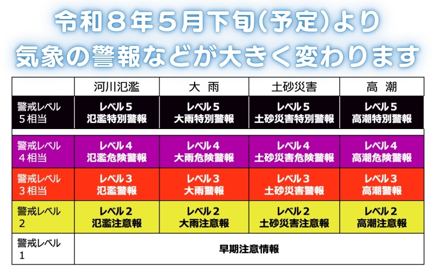 令和8年5月下旬(予定)より気象の警報などが大きく変わります。
