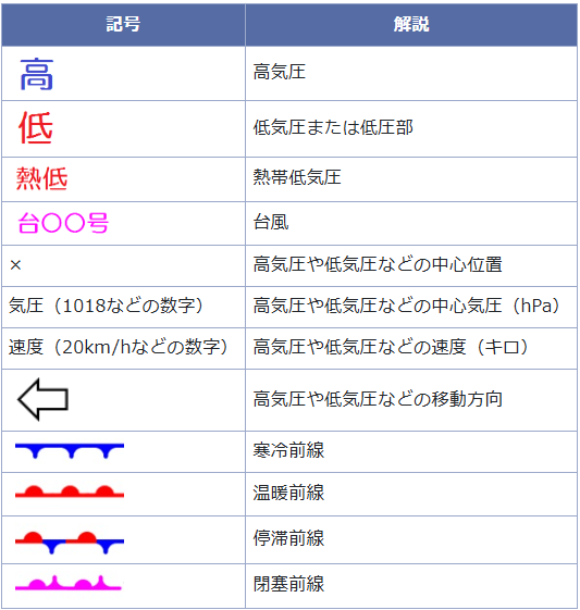 天気図には様々な種類があり、下図に示しているのは日本周辺域の実況天気図です。他にもアジア太平洋域の実況天気図、予想天気図、高層天気図などがあり、気象庁ホームページから確認することができます。詳しくは「天気図について」のページをご覧ください。