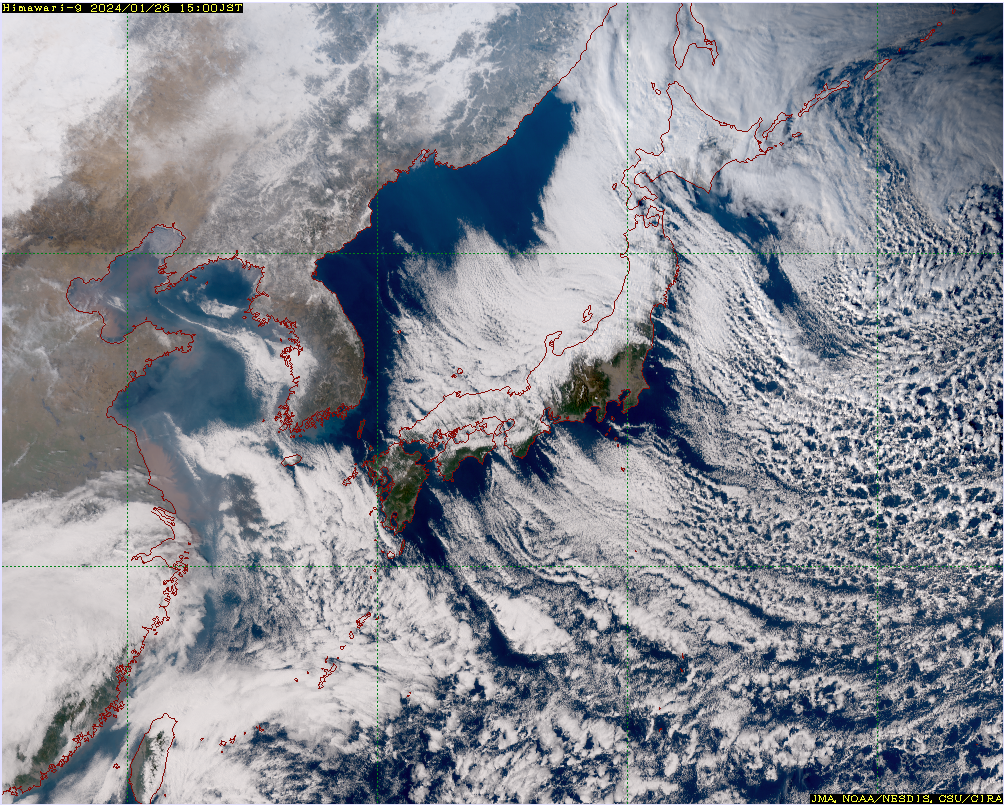 冬型の気圧配置時の衛星写真では、日本海上に「筋状の雲」が見られます。これは、冷たい季節風が比較的暖かい日本海を渡る際に水蒸気を補給し、対流が活発化することで形成されます。雲列は風向きに沿って並び、日本海側に雪をもたらす典型的な現象です。