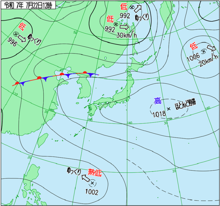 太平洋高気圧が徐々に強くなってくると、梅雨前線は北へ押し上げられて梅雨明けとなります。